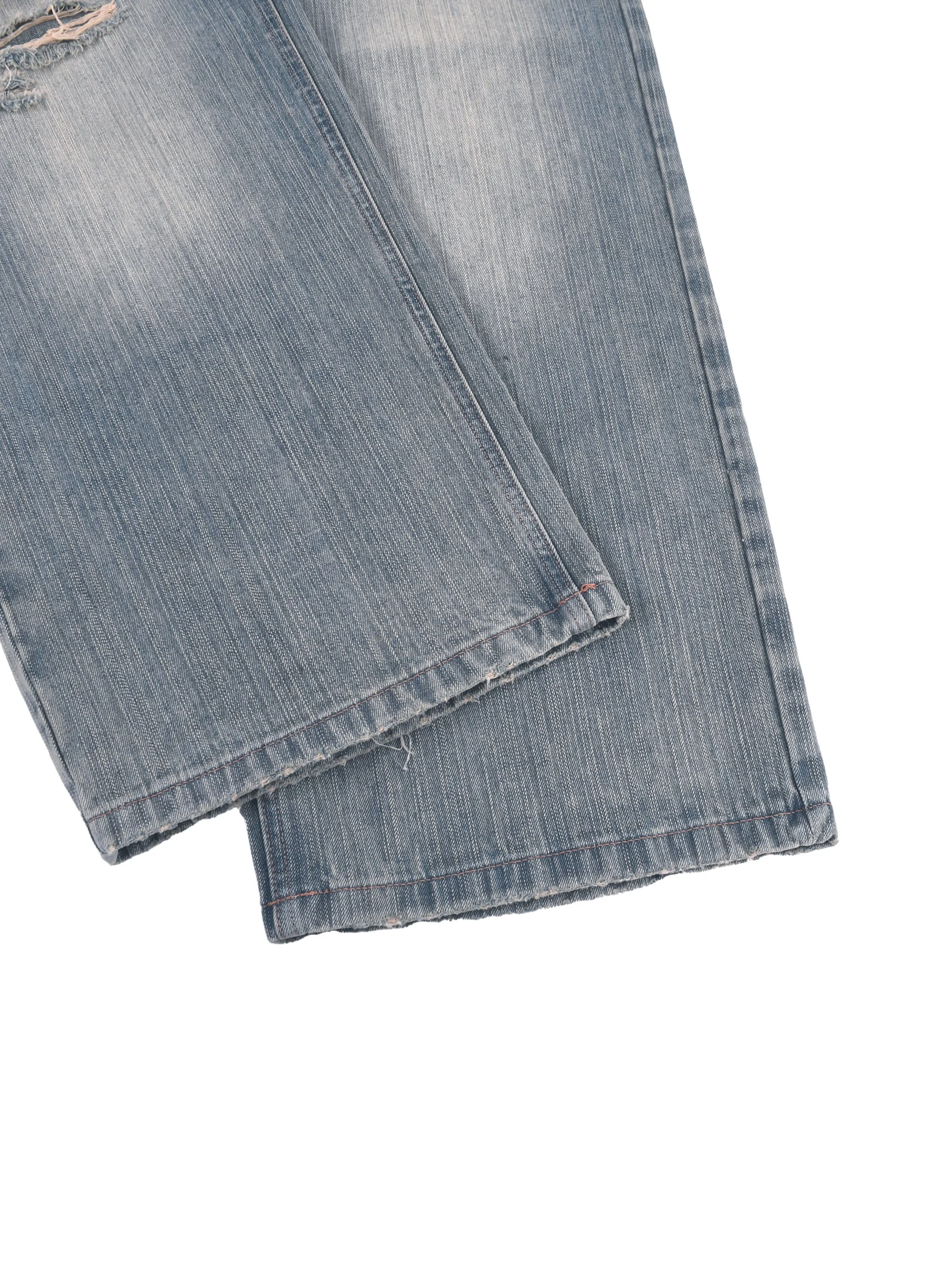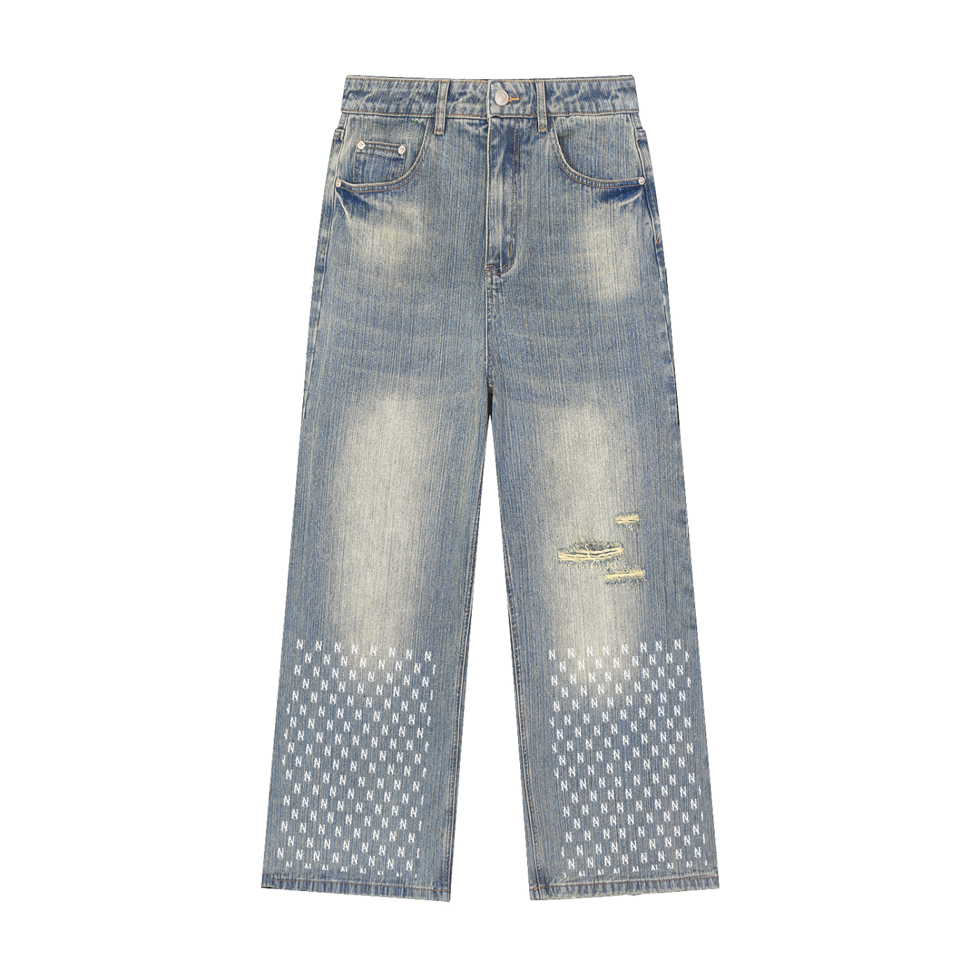 Features: Denim, Ripped, Washed, Regular, Wide Leg, Mid Waist